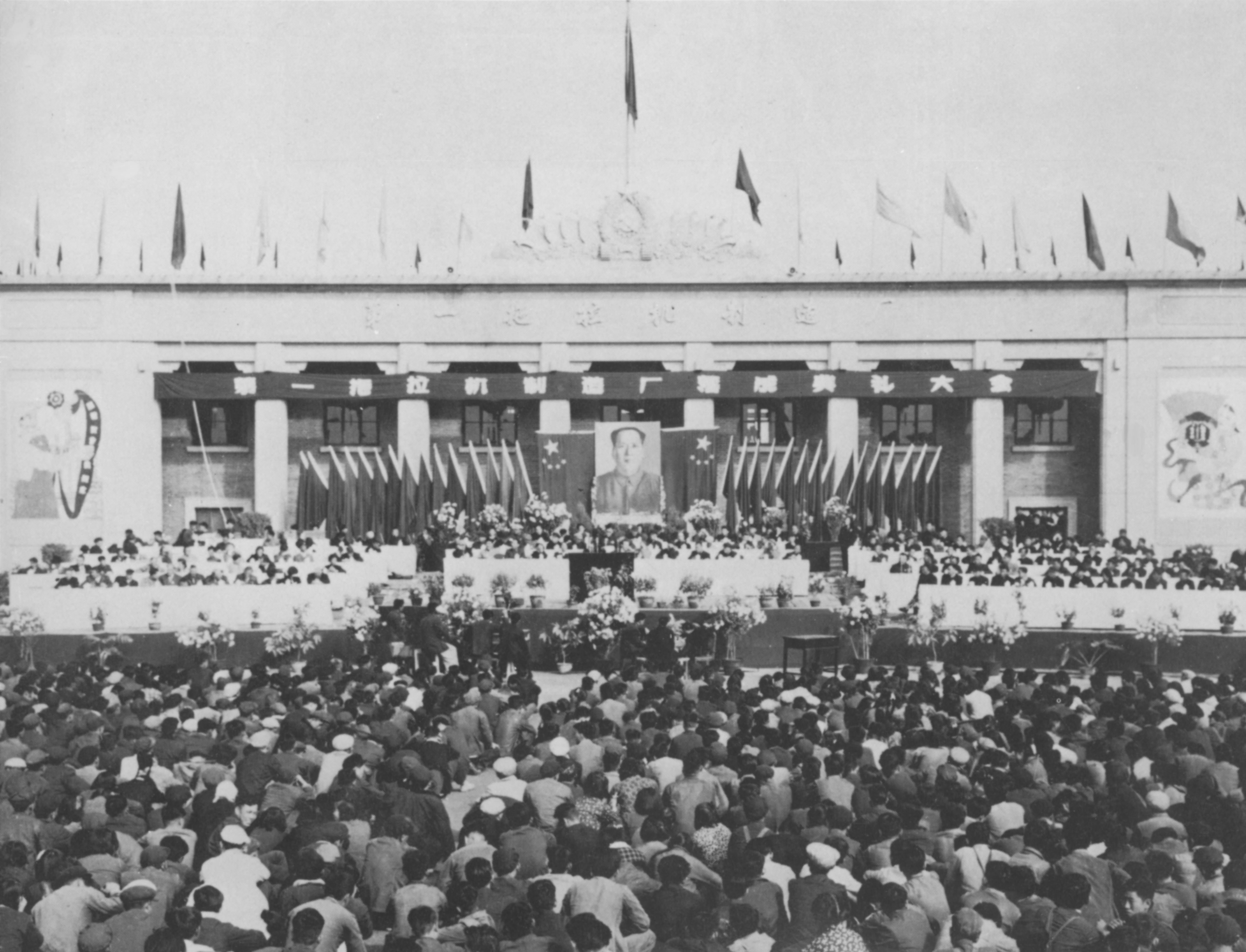 来自五湖四海的第一批建设者汇聚古都洛阳,自力更生、艰苦奋斗,克服了各种难以想象的困难,创造了令人瞩目的“一拖速度”:250名工人38个工作日建成了22500平米的发动机车间,32天建成了12870平米的燃料系统车间,创造了我国建筑工程史的奇迹。